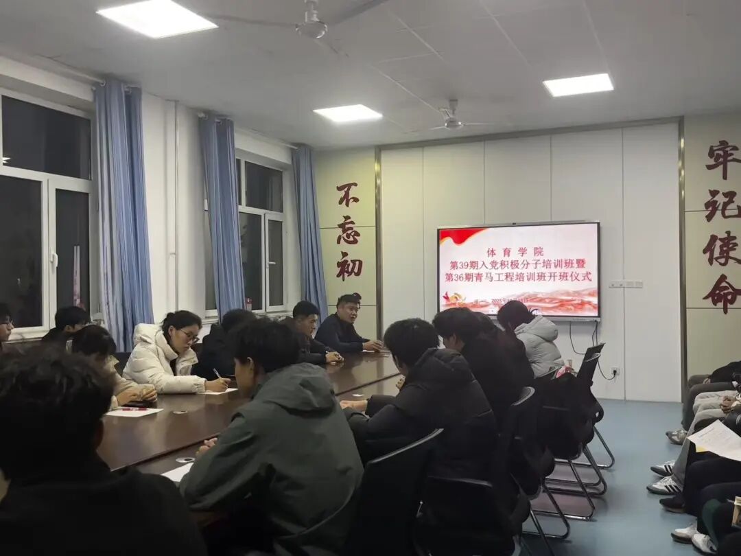10月28日,体育学院举办第39期入党积极分子培训班暨第36期青马工程培训班开班仪式在党员活动室举行。本期全体学员参加开班仪式,学院团委书记陈明参加仪式并作动员讲话。