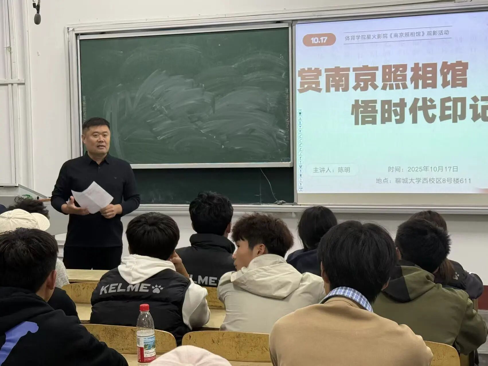 为加强爱国主义教育,让学生在光影中铭记历史、传承精神,聊城大学体育学院秘书部于2025年10月17日在西校区8#611举办“赏南京照相馆,吾时代记忆”活动。