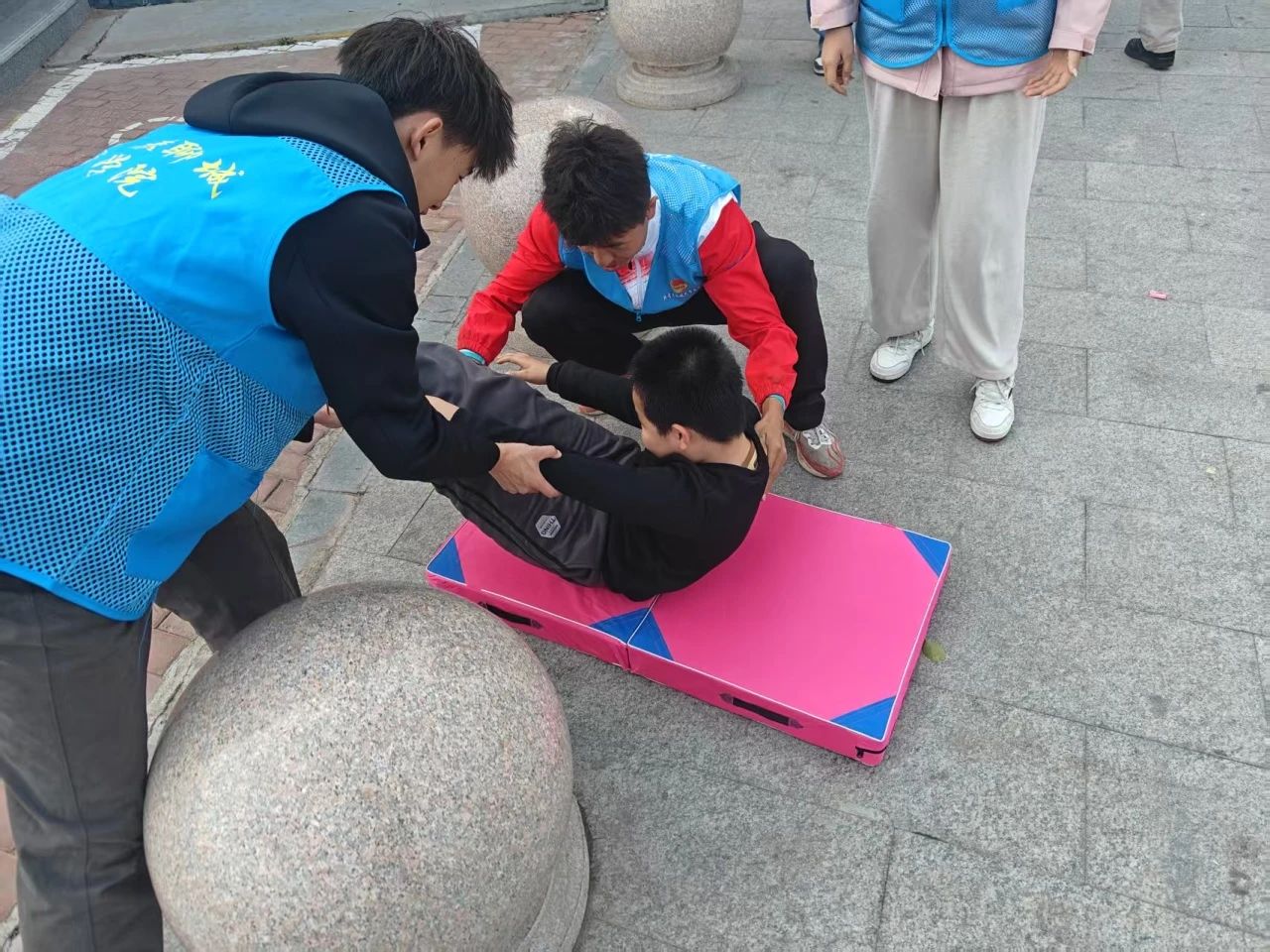 活动开始,志愿者带领孩子们做了简单的准备活动,介绍了体育的重要性,激发孩子们的兴趣。课堂上志愿者讲述如何提升运动表现,更好的保护自己,培养坚强的意志,以及日常锻炼的重要性。在志愿者们的领导下,孩子们相互帮助,进行热身运动,现场气氛热烈。