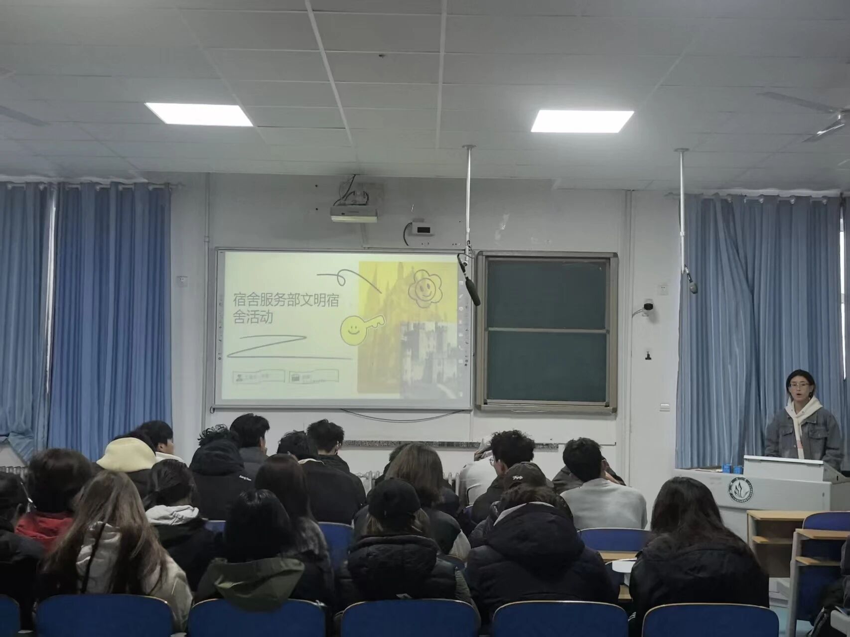 活动伊始,主持人阐述了文明宿舍建设对于营造良好学习生活氛围、促进身心健康发展的重要意义,明确了活动旨在引导同学们树立主人翁意识,共同创建安全、整洁、和谐的生活环境。活动过程中,通过展示优秀宿舍范例图片、解读文明宿舍评分细则、开展内务整理经验分享等多个环节,使同学们对文明宿舍的标准有了清晰直观的认识。