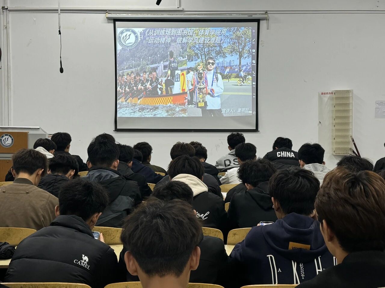 现场同学认真聆听、积极互动,提问环节气氛热烈。同学们围绕“如何克服学业倦怠”“科研入门技巧”等问题踊跃提问,唐明旺逐一耐心解答,其真诚的分享和务实的建议赢得了同学们的阵阵掌声。参会学生纷纷表示,此次分享打破了世人对体育生的刻板印象,更是回应了那些来自外界质疑的声音,让更多人深刻认识到运动精神蕴含的强大育人力量,许多同学表示听完了这场座谈会受益匪浅,同时也给对现阶段有一些迷茫的同学们提供了宝贵的经验和建议,未来将以优秀学长为榜样,把训练中的拼搏劲头转化为学习的内生动力。