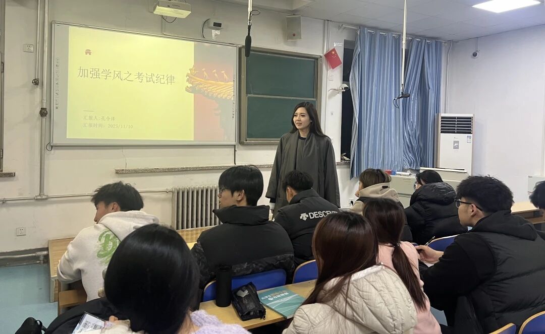为加强学风建设,严肃考试纪律,营造公平、公正的考试环境,聊城大学体育学院于2025年11月10日在西校区5#406教室举行“加强学风之考试纪律”为主题的宣讲讲座。本次讲座主讲人孔令泽面向全体大一新生,为即将到来的期中考试进行考前动员与纪律教育。