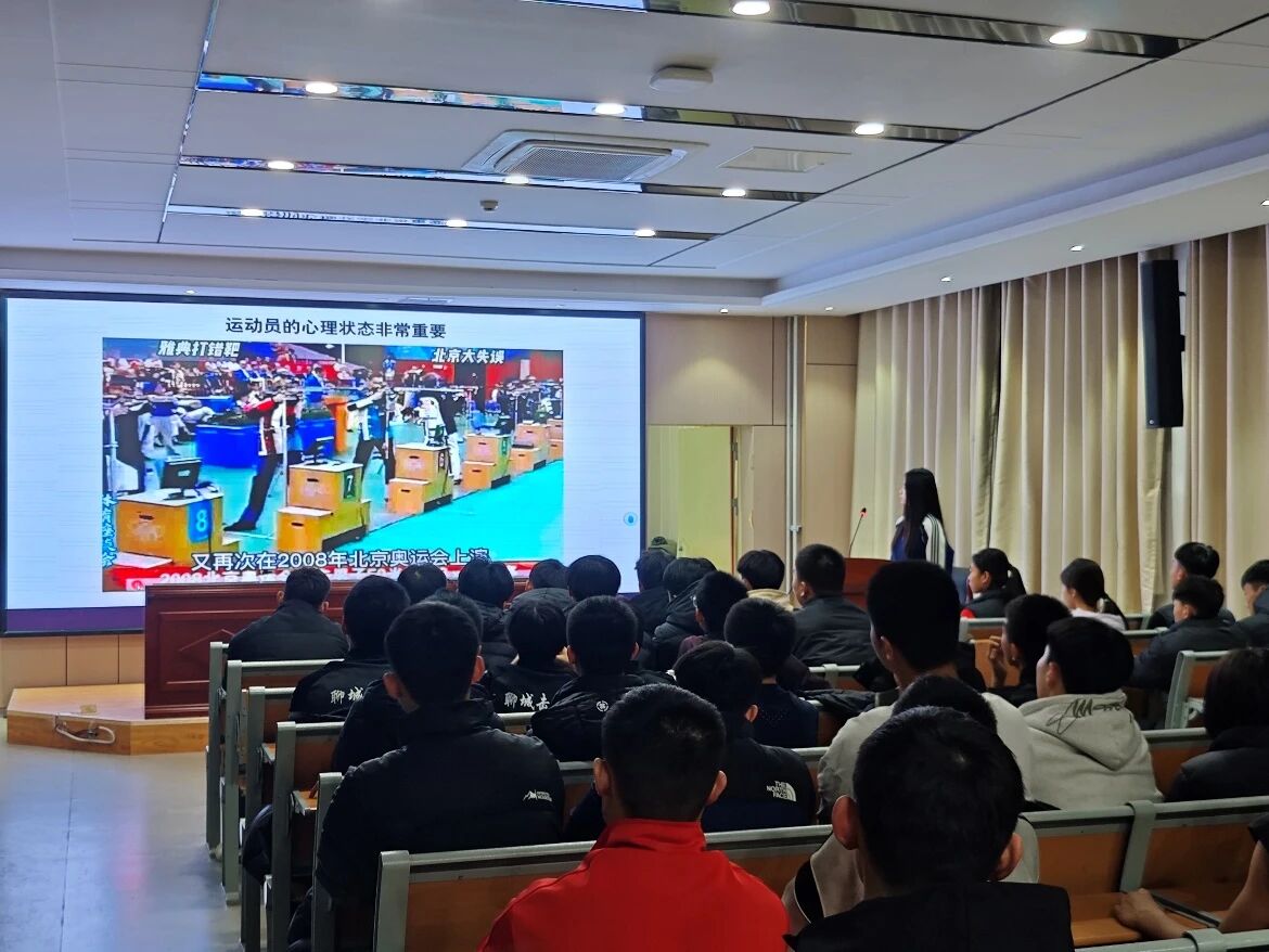为帮助竞技体育后备人才突破心理瓶颈,提升赛场抗压能力,近日,聊城大学体育学院范峥峥老师受邀走进聊城市竞技体育学校,为该校田径、技击、球类与力量、水上和射箭等项目的重点队员带来一场主题为“心赋能·竞出彩”的运动心理专题讲座。这场兼具专业性与实用性的“心理补给”,让即将备战省市级赛事的运动员们收获颇丰。