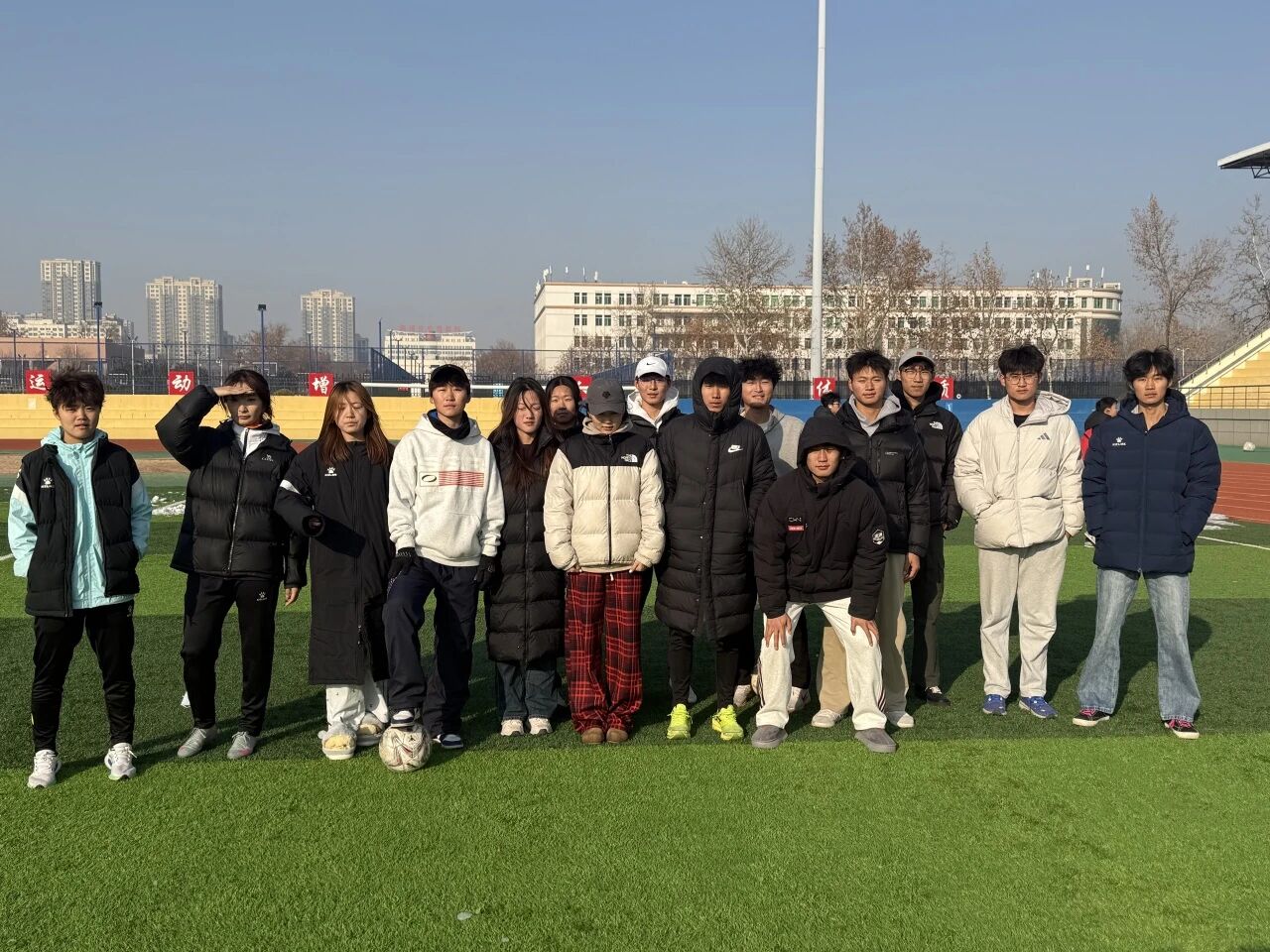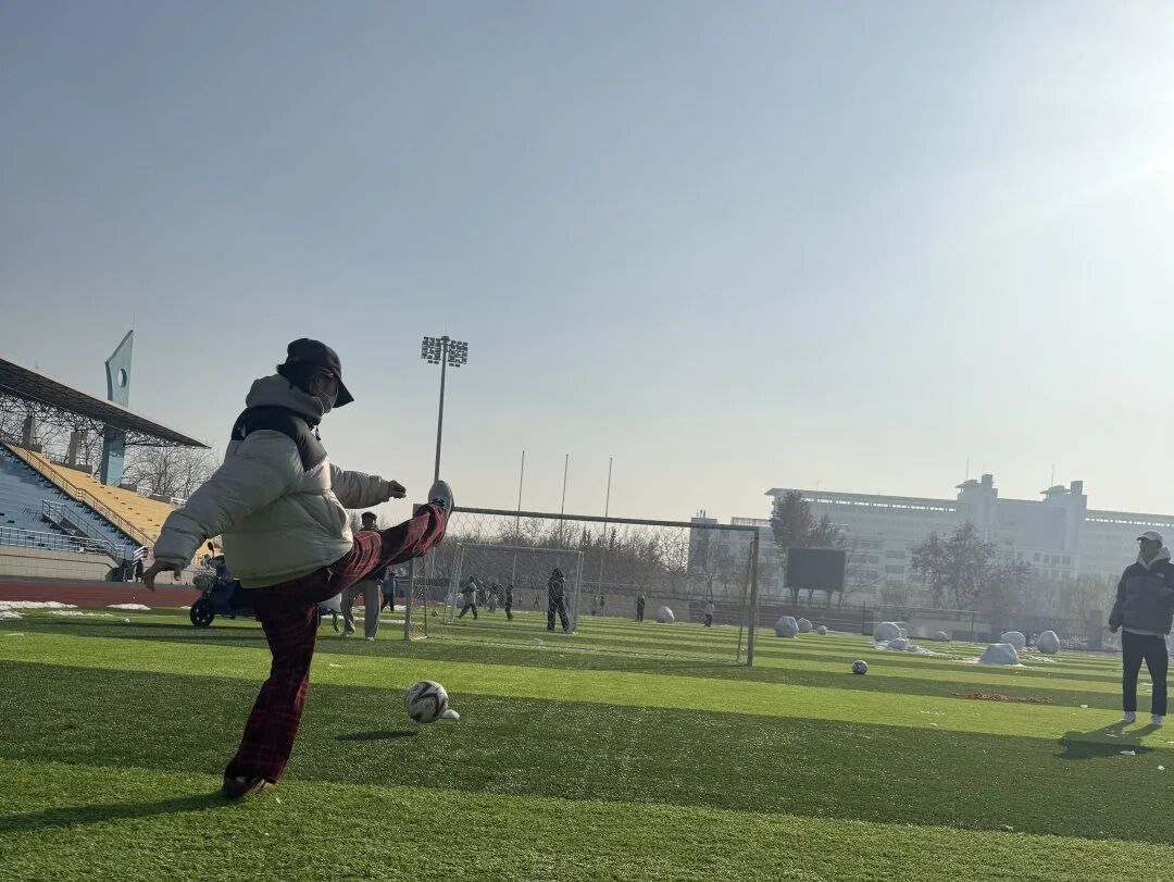 为增强学生体质,缓解学习压力,增强学生们的灵活性与方向感。聊城大学体育学院文体部于2025年12月14日在西校区南田径场举办“蒙眼足球大战”活动。