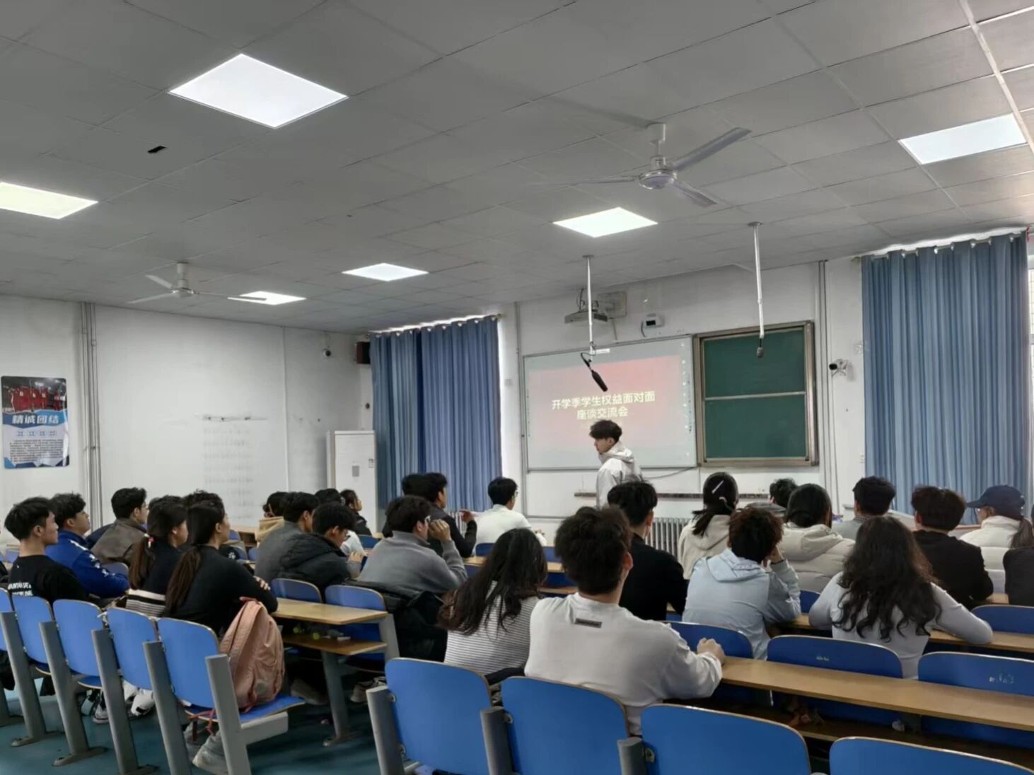 为畅通学生权益反馈渠道,凝聚学生骨干服务力量,切实保障全院同学学习与生活权益,3月11日,体育学院“权益面对面”新学期学生干部权益工作会议在学院307教室顺利召开。本次会议由体育学院刘超群主持,体育学院各班级学生干部及各部门部长参加会议。