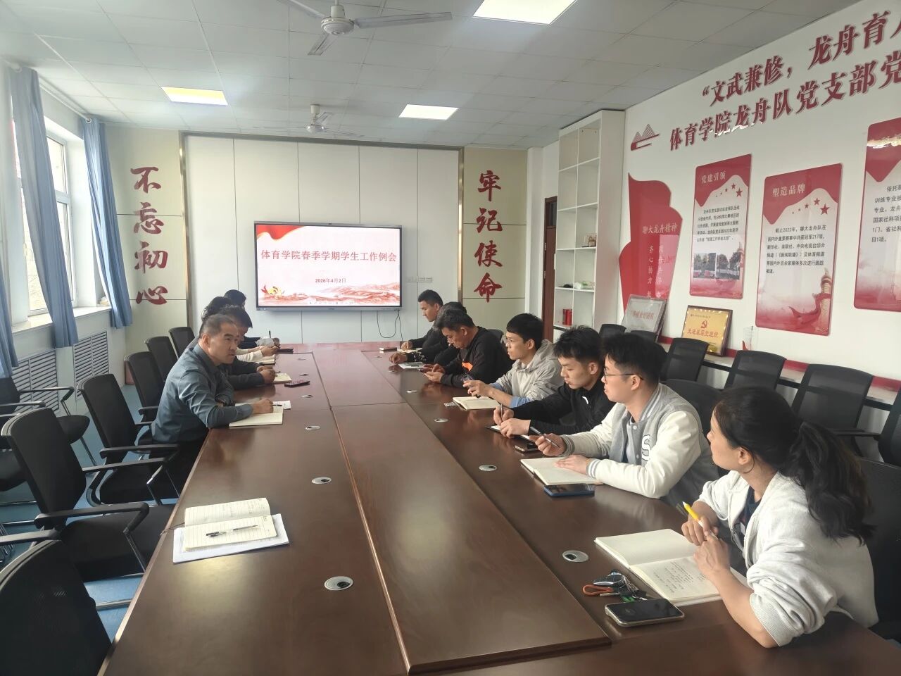 4月2日下午,体育学院在三楼会议室召开学生工作例会,全面传达落实学校春季学期学生工作会议精神、部署清明假期各项安全工作要求。学院党委副书记李晓鹏、全体辅导员、班主任参加会议。